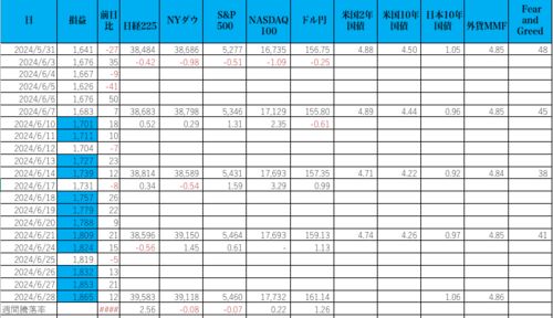 わたしのメイン証券口座アカウントたるSBI証券での運用成果について週次で振り返ってみます。 ■元本:3000万円→4641万円 ■トータルリターン:1680万円→1641万円(▲0.83%) ■日経225:38646→38484(▲0.42%) ■NYダウ:39069→38686(▲0.98%) ■S&P500:5304→5…