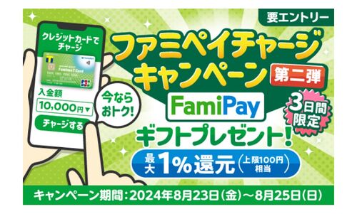ファミマTカードユーザーの方は絶対参加しましょう✨ 3日間の期間限定キャンペーンです‼️ ftcard.pocketcard.co.jp ◾️エントリー&クレジットカードチャージ期間 2024年8月23日(金)~2024年8月25日(日) ◾️キャンペーン内容「キャンペーンコード:9119」期…